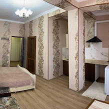Стандартный номер рассчитан на четверых гостей. В номере есть все удобства для комфортного проживания. У него отдельный вход и уличный столик с креслами.