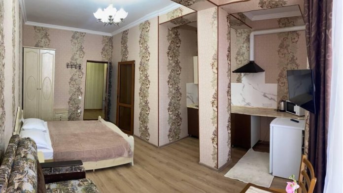 Представляем вашему вниманию комфортабельное жилое пространство с мини-кухней, оборудованной всем необходимым: сплит-системой, чайником, холодильником и микроволновой печью. В наличии также имеются предметы личной гигиены.