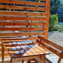 В домике две односпальные кровати, кондиционер, санузел. Рядом с домиком беседка-кухня, есть парковка для автомобиля.