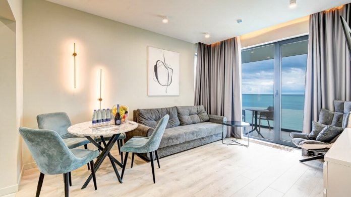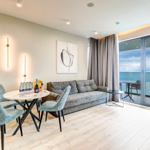 Апартаменты расположены на 1-ой береговой линии Черного моря в экологическом чистом районе. Элегантность интерьера и дружественная к окружающей среде архитектура дарят атмосферу спокойствия и домашнего комфорта. Одной из визитных карточек наших апартаментов является роскошный собственный пляж с лазурно-кристальным морем и роскошными бассейнами-инфинити с пленительной безграничностью водной стихии, которая придает еще больше наслаждения и генерирует новые эмоциональные впечатления для шикарных фотографий и отдыха. Уникальный, целебный климат местной локации обогащает потребности организма в красоте и здоровье, по средством аэротерапии и талассотерапии. Данный курорт предлагает приятный пляжный отдых с восстановлением жизненных сил и наполнением энергией.