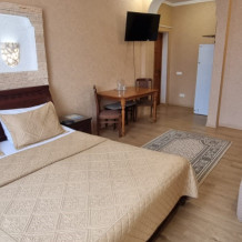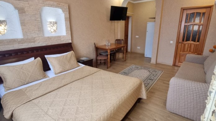 Наши номера выполнены в классическом стиле. Уютно и светло, тепло и комфортно. В каждом номере кондиционер, телевизор, фен, холодильник, WI-FI, ежедневная уборка, предоставляем пляжные полотенца.