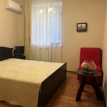 Имеется: телевизор, кондиционер, отопление шкаф, вешалка, зеркало, плотные шторы, рабочий стол, стулья, чайник, фен.