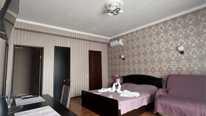 Гостевой дом «Anastasia» расположен на берегу Черного моря, у санатория «Радуга». В номерах есть все необходимое для комфортного проживания: чайник, холодильник, фен, кондиционер, белое постельное белье, полотенца, халаты, гигиенические средства.