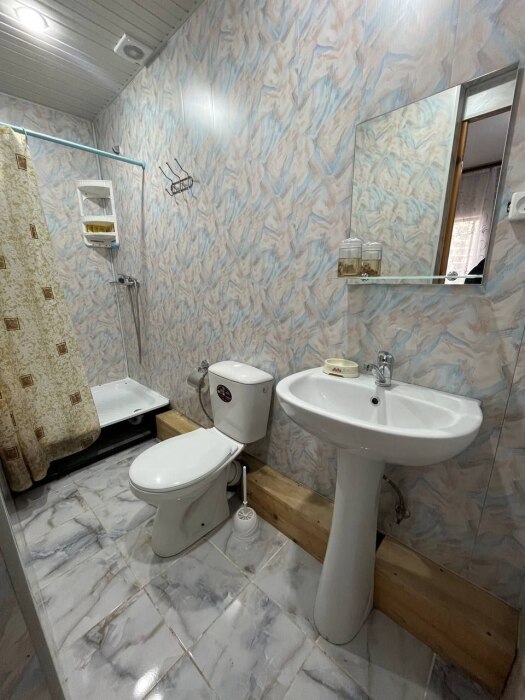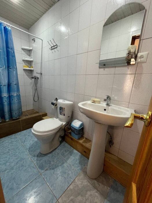 Индивидуальная ванная комната: душ, раковина, туалет.
