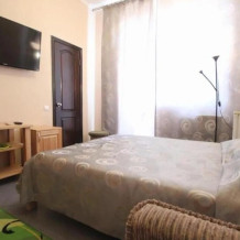 Совмещенный санузел с душевой кабинкой, гигиенические средства, полотенца. В номере двуспальная кровать ортопедический матрас, ТВ, мини-холодильник, Wi-Fi. Каждый номер уникален, поэтому площадь номера и
