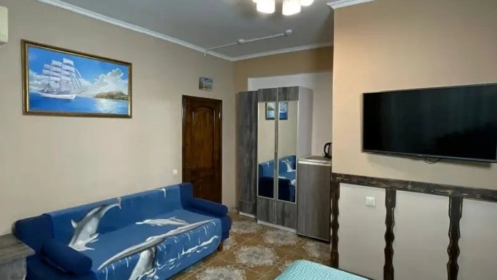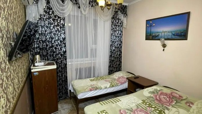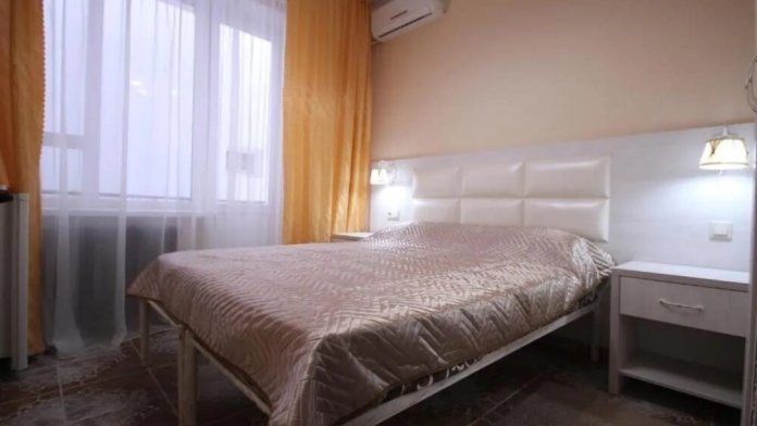 Совмещенный санузел с душевой кабинкой, гигиенические средства, полотенца. В номере двуспальная кровать, ортопедический матрас, ТВ, мини-холодильник, Wi-Fi. Каждый номер уникален, поэтому площадь номера и