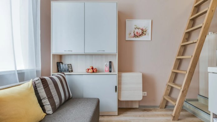 - ортопедический двуспальный матрас в зоне для сна на втором этаже