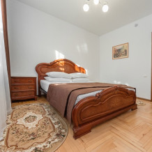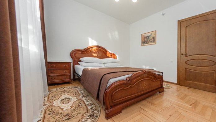 Номера категории «Люкс» двухкомнатные. В номере есть все необходимые удобства: двуспальная кровать, набор мягкой мебели, шкаф, прикроватные тумбочки, телевизоры, холодильник, кондиционер. В ванной комнате установлен душ, гостям предоставляется набор туалетных принадлежностей.