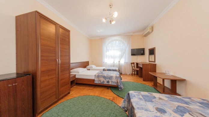 Номера категории «Стандарт» однокомнатные, рассчитанные на размещение двух гостей. В номерах имеются все необходимые удобства: двухспальная или две односпальные кровати, прикроватные тумбочки, шкаф, телевизор, кондиционер. В данных номерах гостевого дома есть собственная ванная комната, где установлен душ.