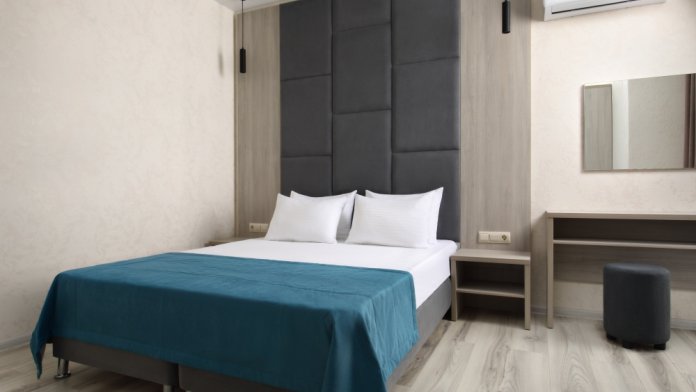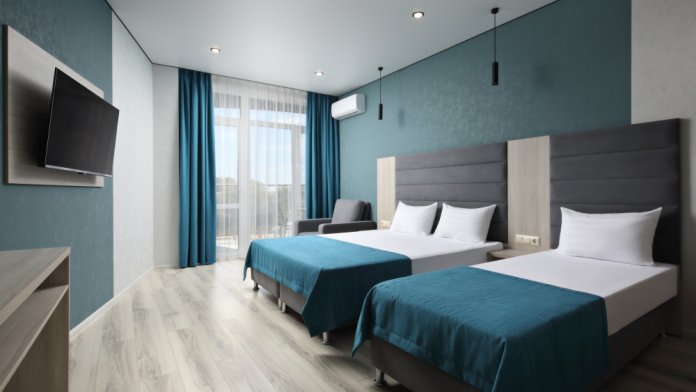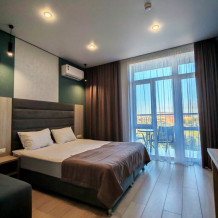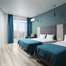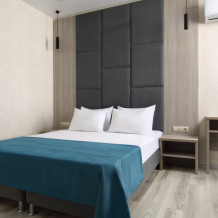 Уютный однокомнатный номер с двуспальной и односпальной кроватями, либо с 3 односпальными кроватями и балконом.