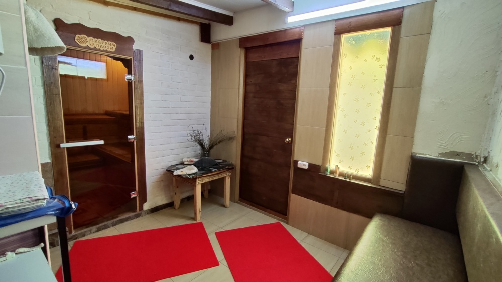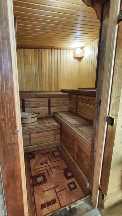 Ha территории 2 большие беседки с мангалами для приготовления блюд на огне. Решетки, шампура также в наличии. Есть беседка для детей с качелями. Детская площадка с горкой, гамак, батут, песочница с игрушками. Есть крытый бассейн, лежаки. Также на территории есть сауна за дополнительную плату. Территории большая, много зелени, сад и декоративные растения. Есть где спрятаться от жары. Парковка для машин на территории, место не ограничено.