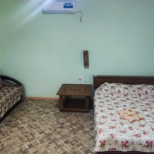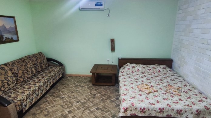 Имеется все для семейного отдыха. В номерах есть постельное бельё, полотенца, фен, телевизор, сплит-системы, в каждом номере свой санузел. На общей кухне имеется все для приготовления пищи. Газовая плита, мультиварка, микроволновая печь, чайник, мойка, стиральная машина. У каждого номера свой комплект посуды.