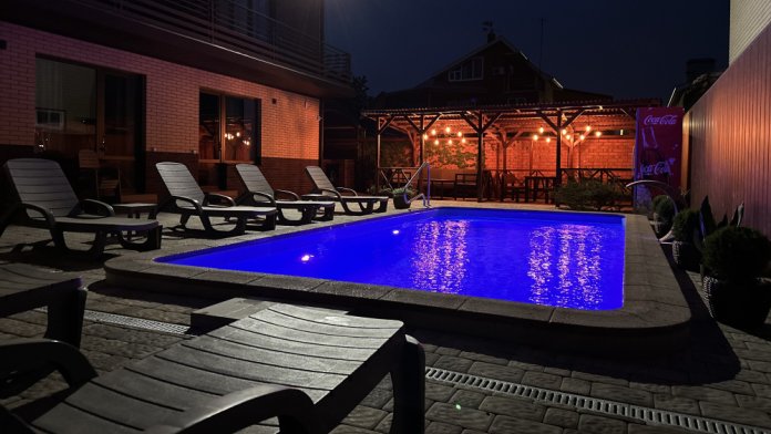 Новый композитный бассейн с подогревом! Размером: 8м х 4м Глубина: 1.31-1.85м Можно не только поплавать, но поиграть в любые водные забавы! Бассейн оснащён удобным спуском на воду и оборудован сидениями для комфортного отдыха и приятного времяпровождения в воде!
