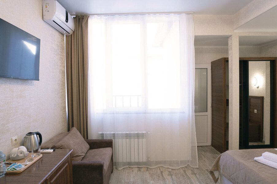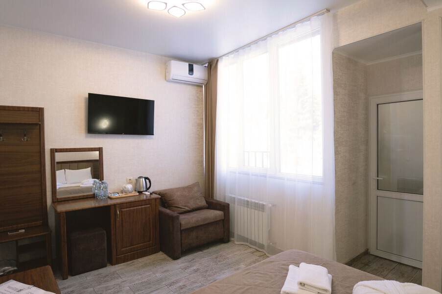 В номерах этой категории имеется балкон, на котором можно насладиться горным воздухом и красивым пейзажем, открывается потрясающий вид на Кавказские горы.
