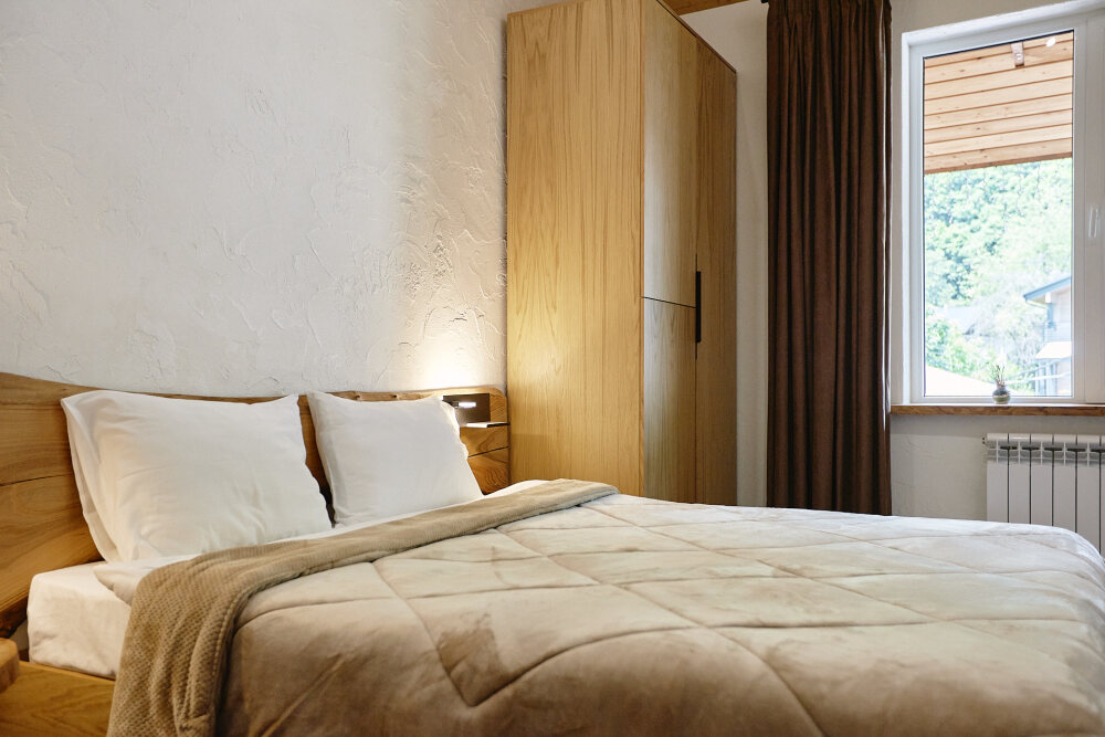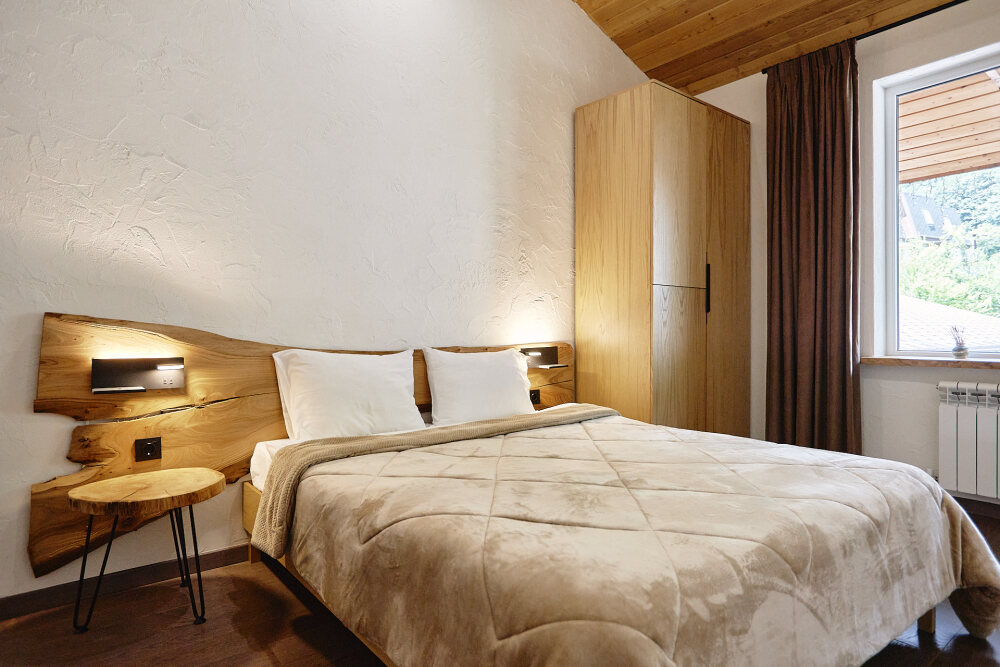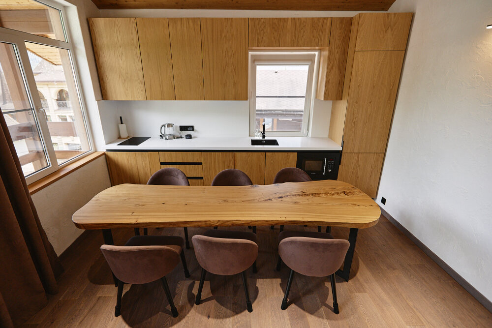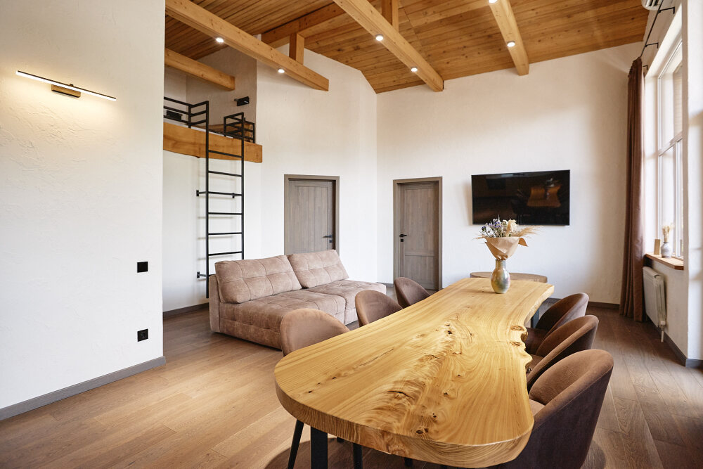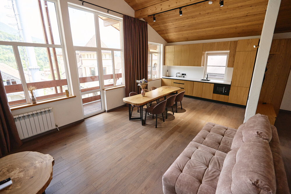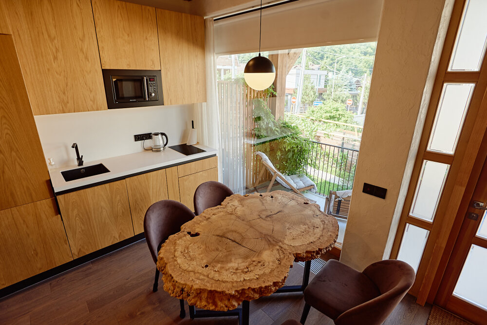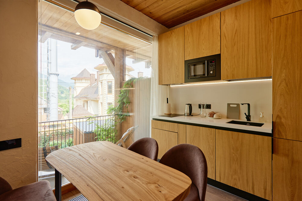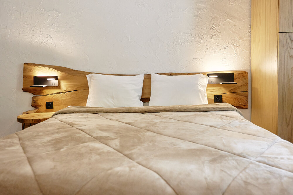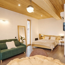 Отель предоставляет разнообразные варианты проживания в отдельных апартаментах с 1 спальней и кухней-студией, с 2 спальнями и кухней-гостиной, а также возможность арендовать посуточно наш новый отель целиком - для большой компании друзей.