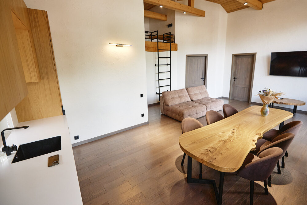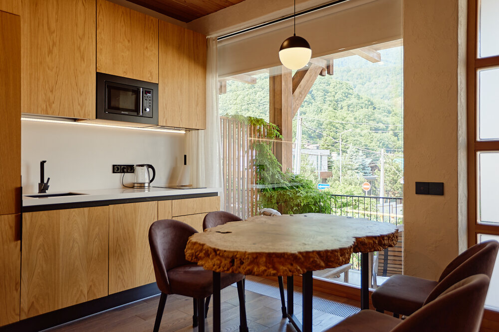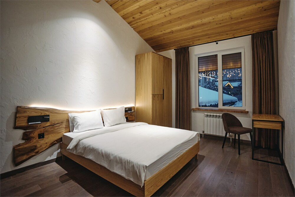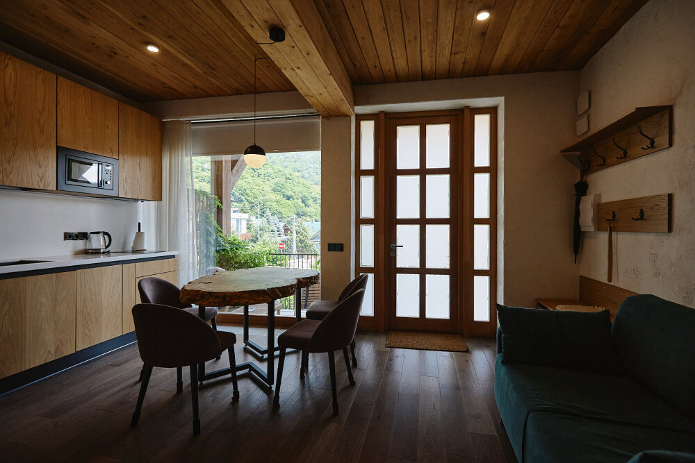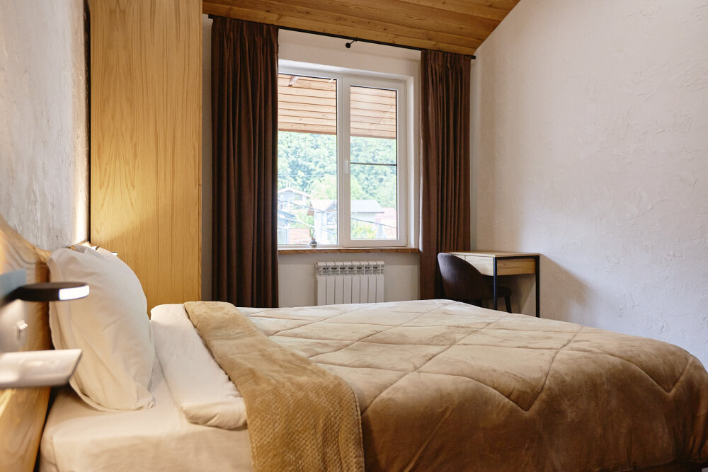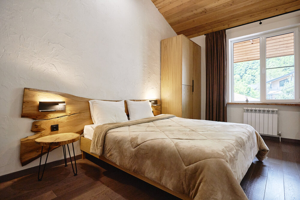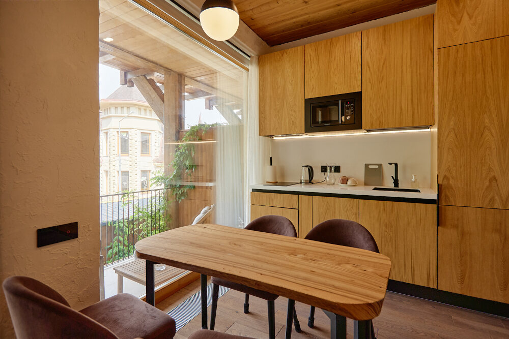 Отель предоставляет разнообразные варианты проживания в отдельных апартаментах с 1 спальней и кухней-студией, с 2 спальнями и кухней-гостиной, а также возможность арендовать посуточно наш новый отель целиком - для большой компании друзей.