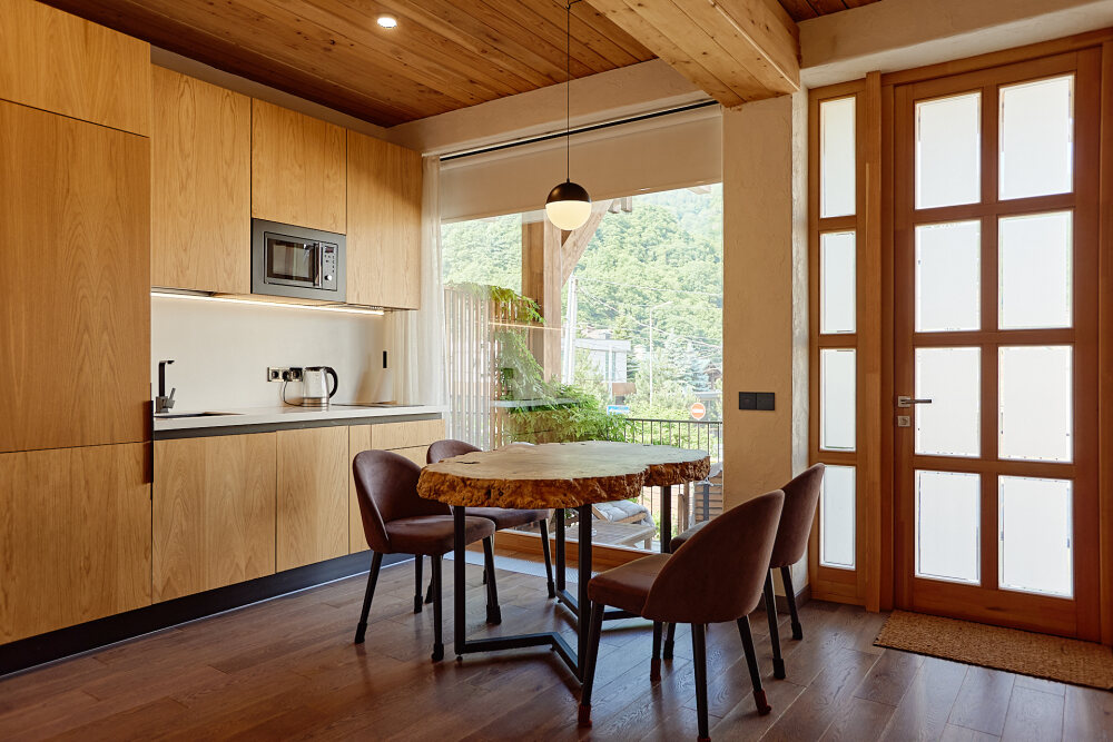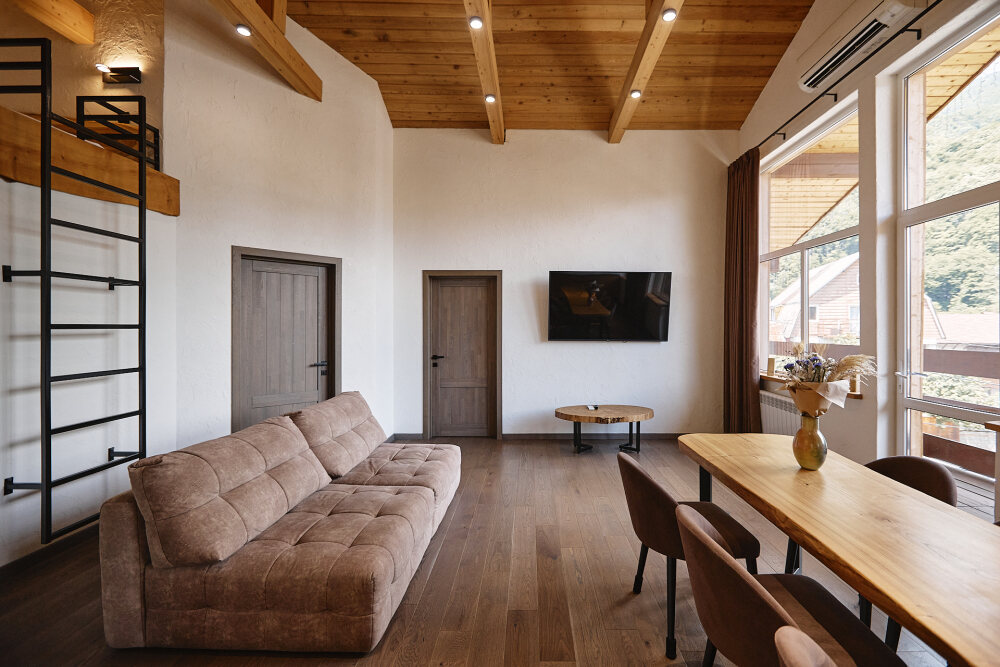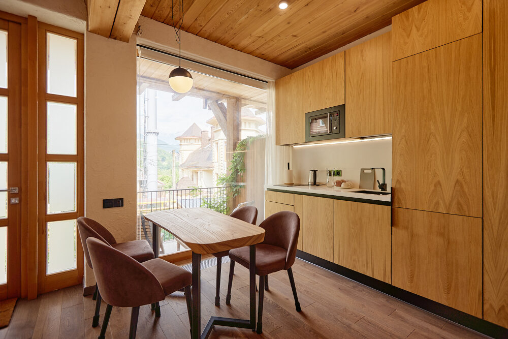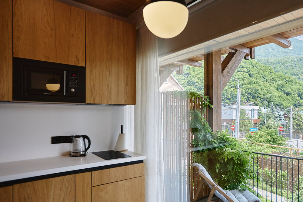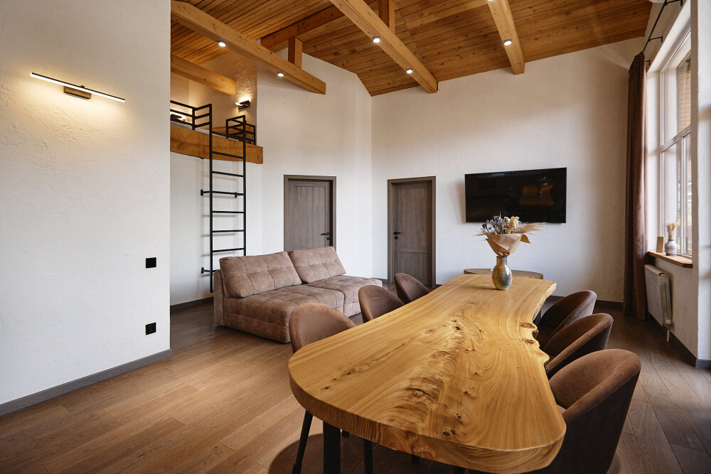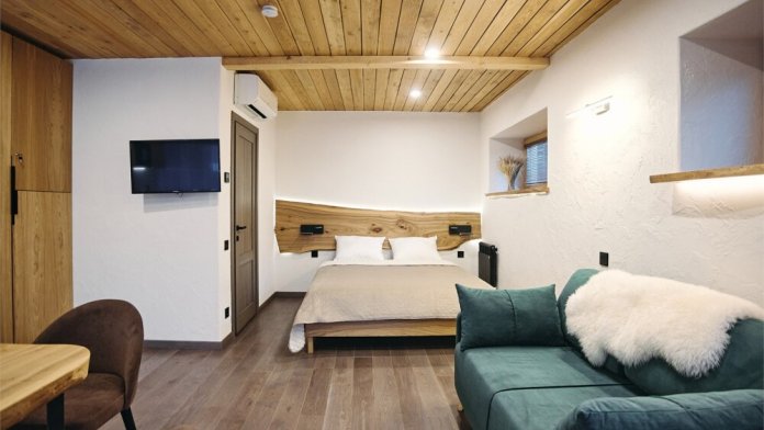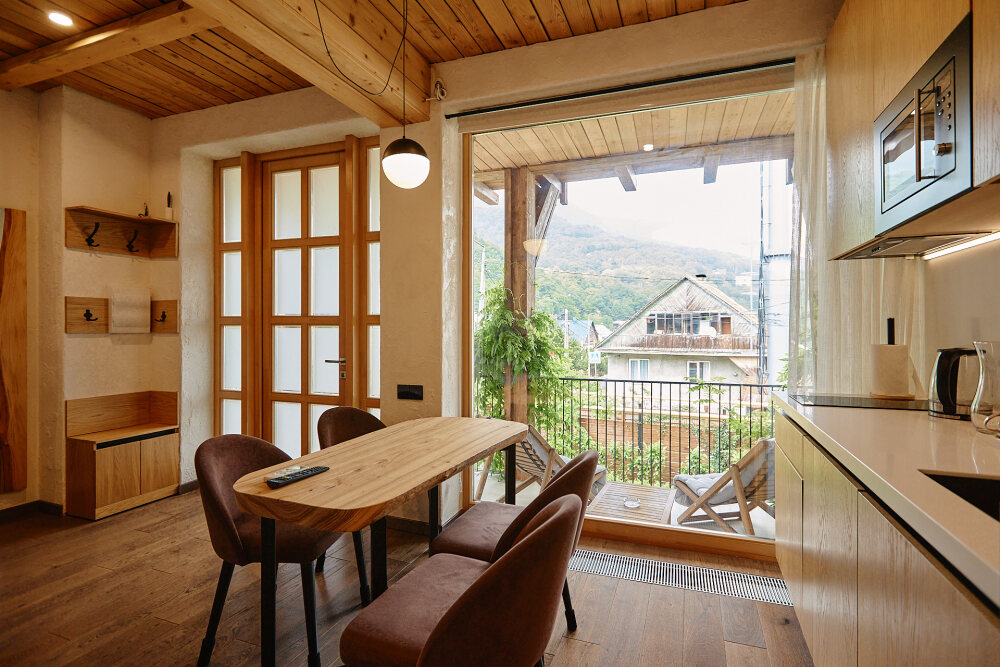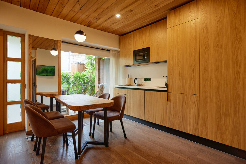 Отель предоставляет разнообразные варианты проживания в отдельных апартаментах с 1 спальней и кухней-студией, с 2 спальнями и кухней-гостиной, а также возможность арендовать посуточно наш новый отель целиком - для большой компании друзей.