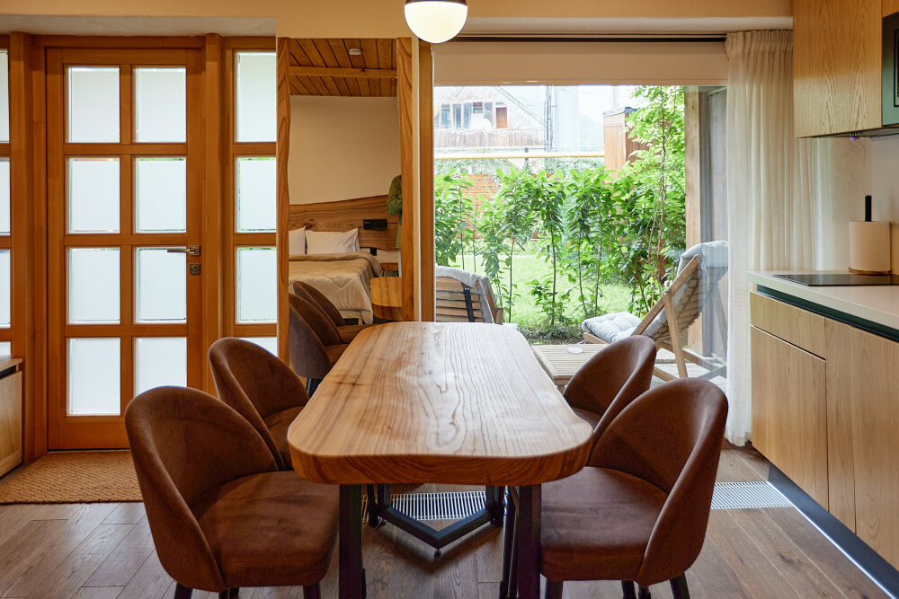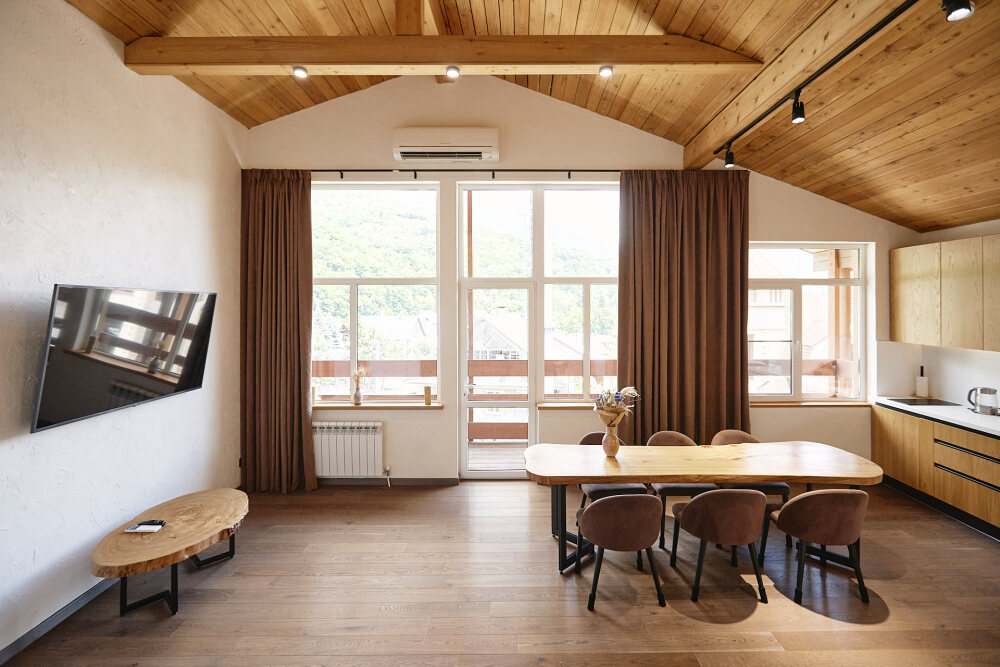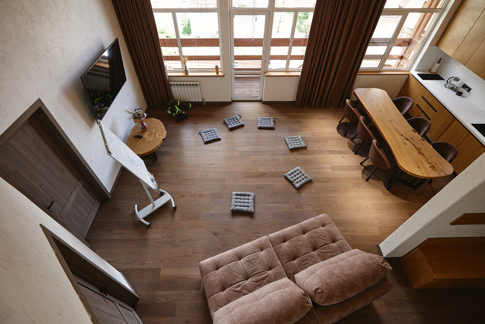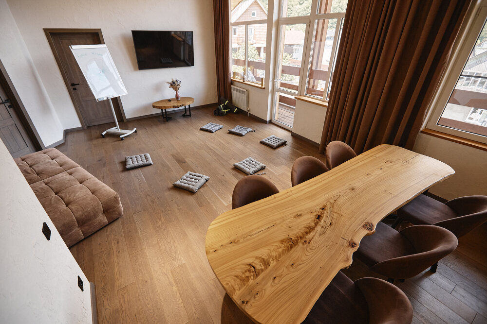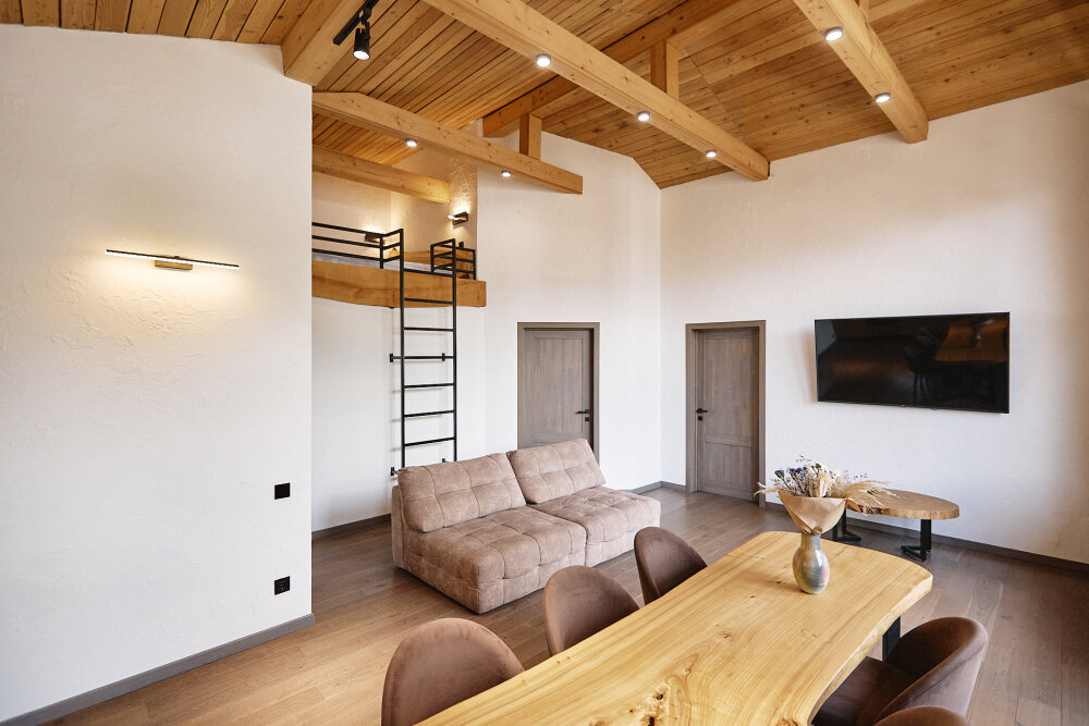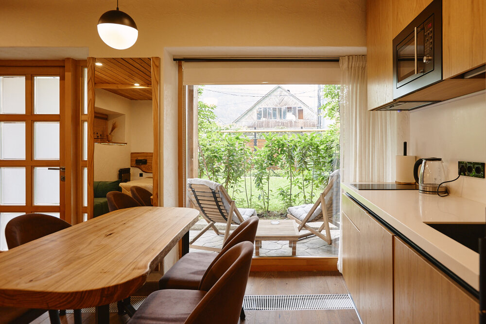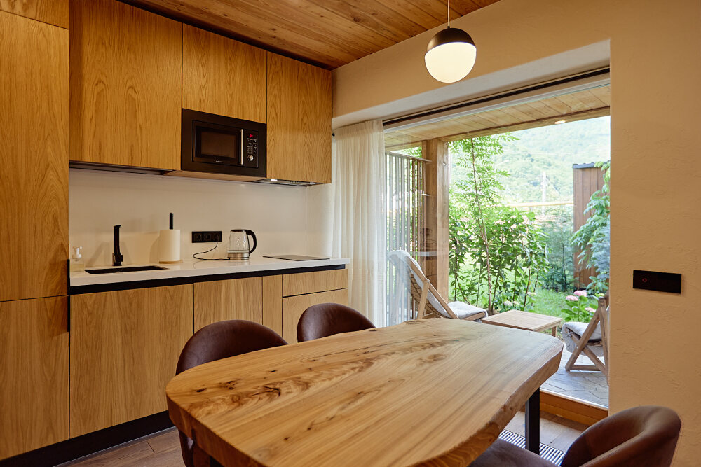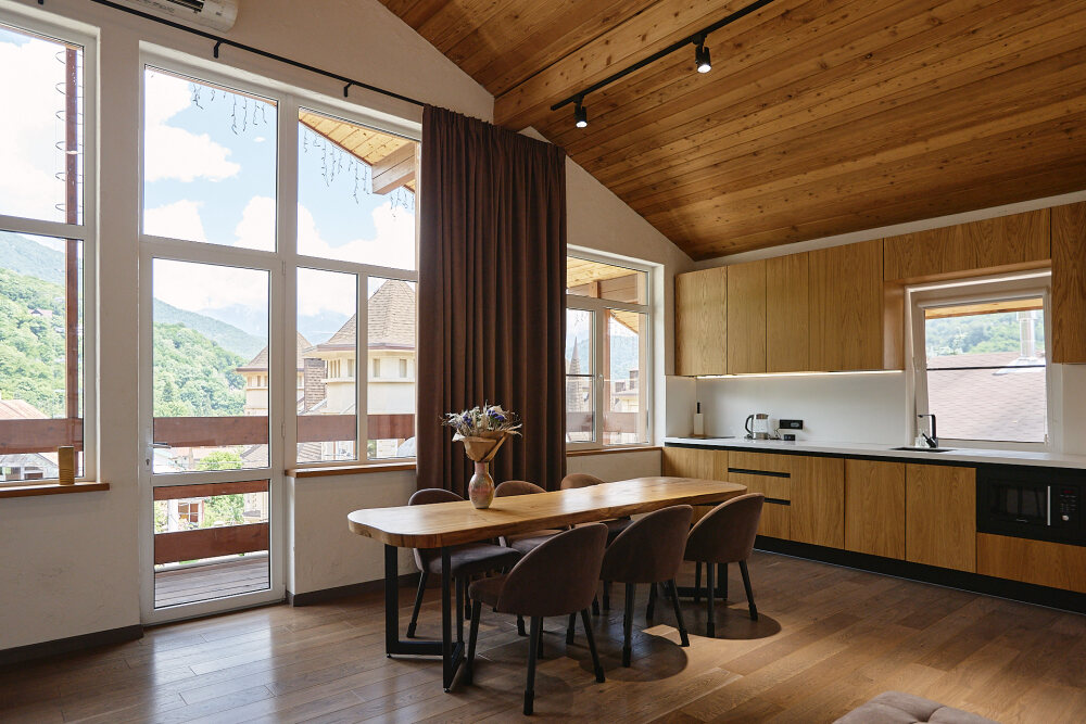 Отель предоставляет разнообразные варианты проживания в отдельных апартаментах с 1 спальней и кухней-студией, с 2 спальнями и кухней-гостиной, а также возможность арендовать посуточно наш новый отель целиком - для большой компании друзей.
