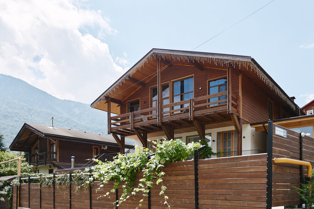 Пентакли целиком - большой отдельный дом в центре Красной Поляны, 3 этажа. Море света и воздуха. Барбекю-площадка в огороженном дворе бесплатно.