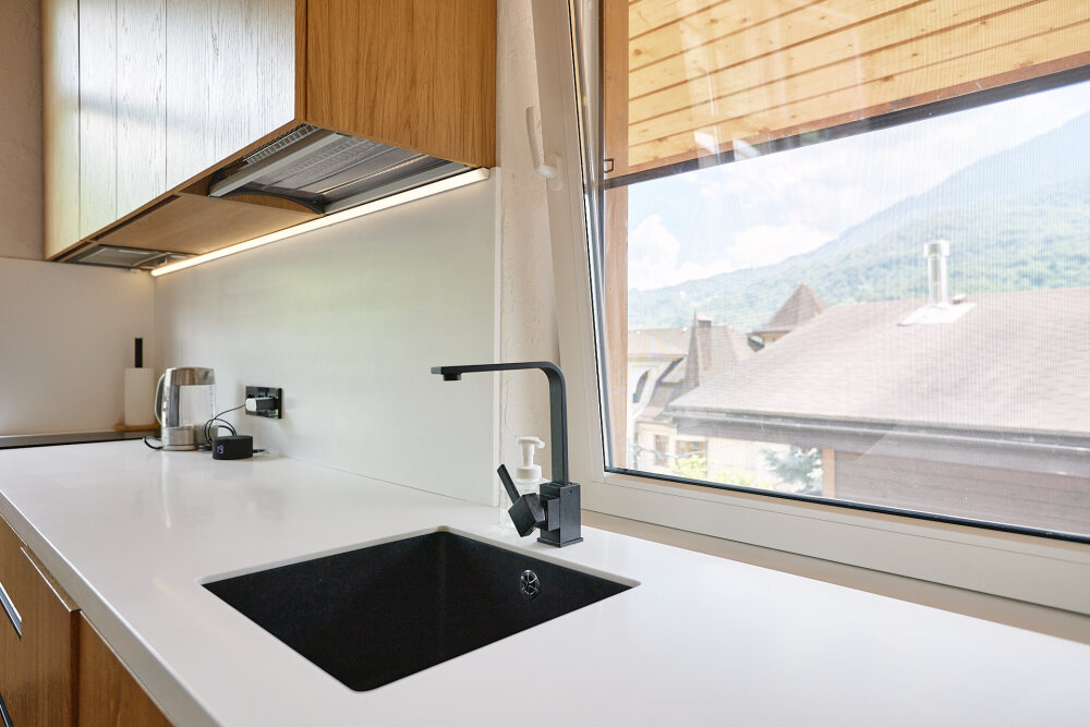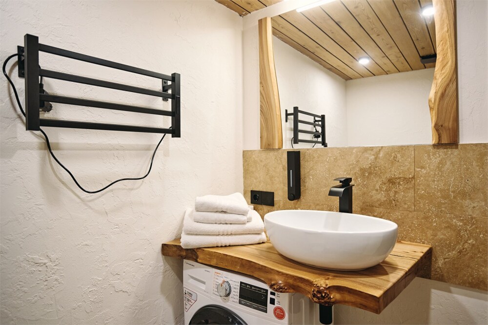 Апартамент на 2 этаже с удобной кроватью и раскладывающимся диваном, а также с современной оборудованной кухней. В ванной комнате душевая кабина и стиральная машина. Номер наполнен качественной мебелью. Здание построено с использованием современных отделочных материалов