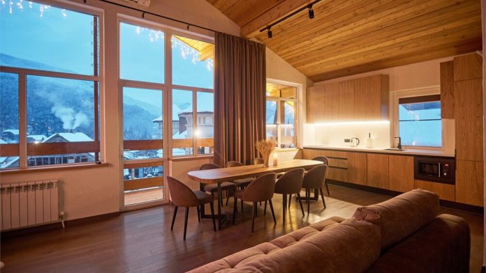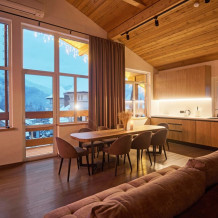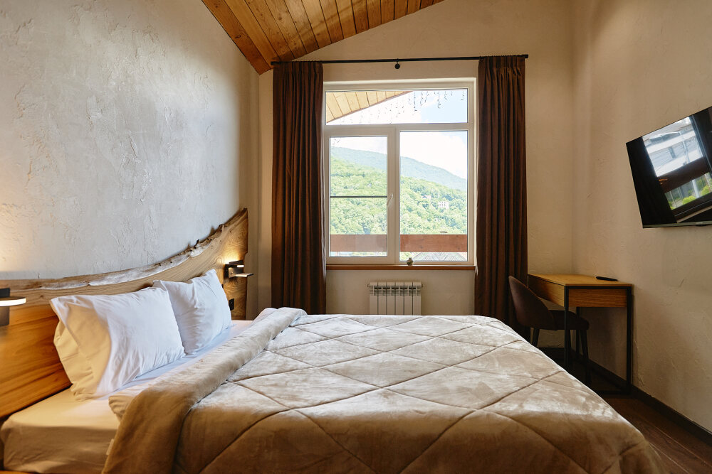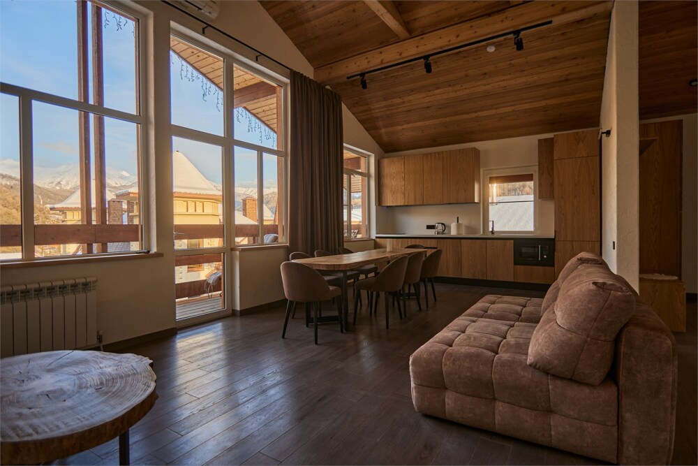 Апарт-отель находится в горах Красной поляны, среди развитой инфраструктуры посёлка, рядом с подъемниками и прокатом горнолыжного снаряжения.