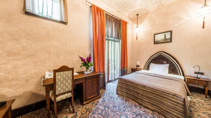 Здание отеля построено в традиционном для Северного Кавказа стиле с использованием большого количества натурального камня и дерева, а общие пространства и номера стилизованы под интерьер конца 19, начала 20 века. Дизайн отеля разработал известный российский дизайнер.