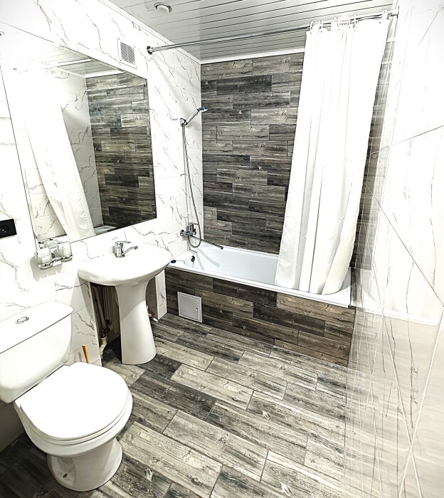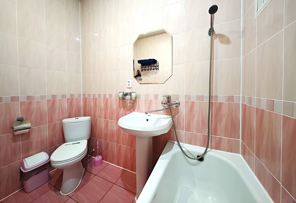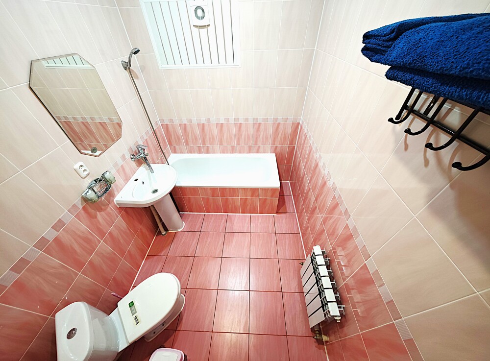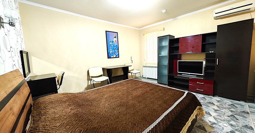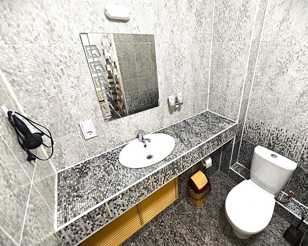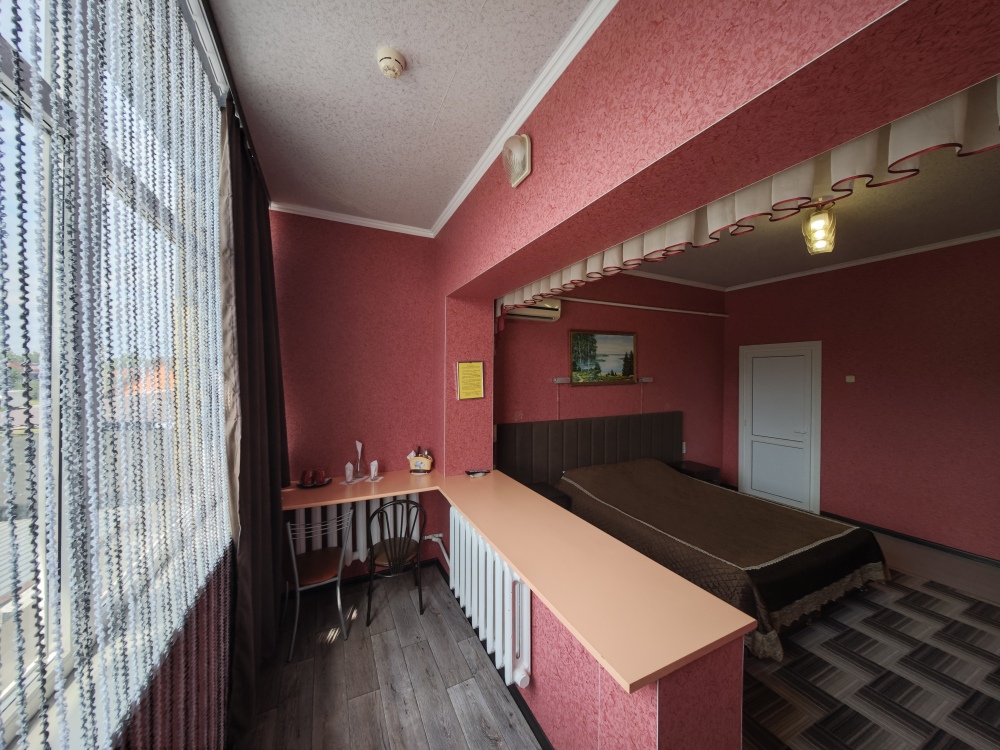 №1. Просторный номер с собственной лоджией на первом этаже отвечает всем современным требованиям комфорта. Оснащение номера: оборудован современной кроватью Box Sprinq, телевизор с плоским экраном 32», сплит система, холодильник, микроволновка, чайник, барная стойка с необходимой посудой и многое другое. В ванной комнате: душ, туалет, бесплатные гигиенические принадлежности: мыло, шампунь, комплект полотенец. Утюг с гладильной доской на этаже.