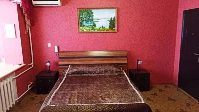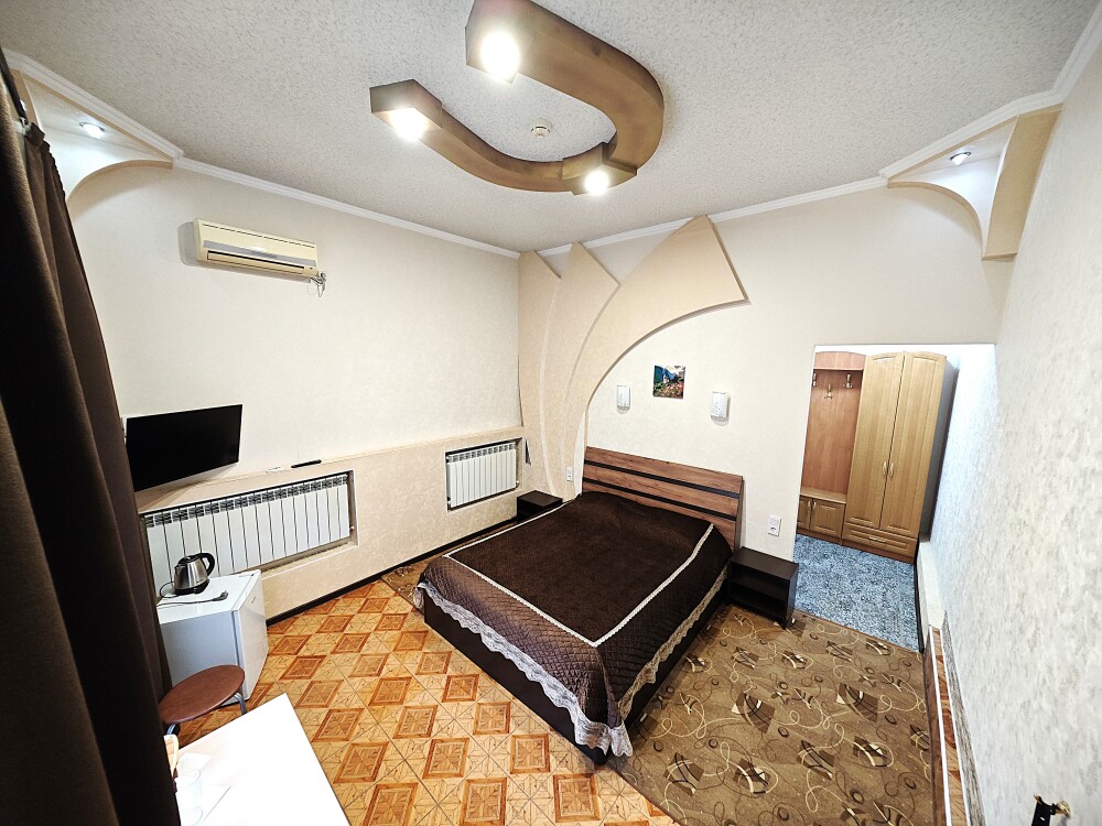 №15. Уютный улучшенный номер находится на первом этаже и отвечает всем современным требованиям комфорта. Оснащение номера: оборудован двуспальной кроватью, телевизор с плоским экраном 32», сплит система, холодильник, чайник, журнальный столик с необходимой посудой и многое другое. В ванной комнате: душ, туалет, фен, бесплатные гигиенические принадлежности: мыло, шампунь, комплект полотенец. Утюг с гладильной доской находится на этаже.
