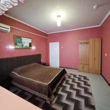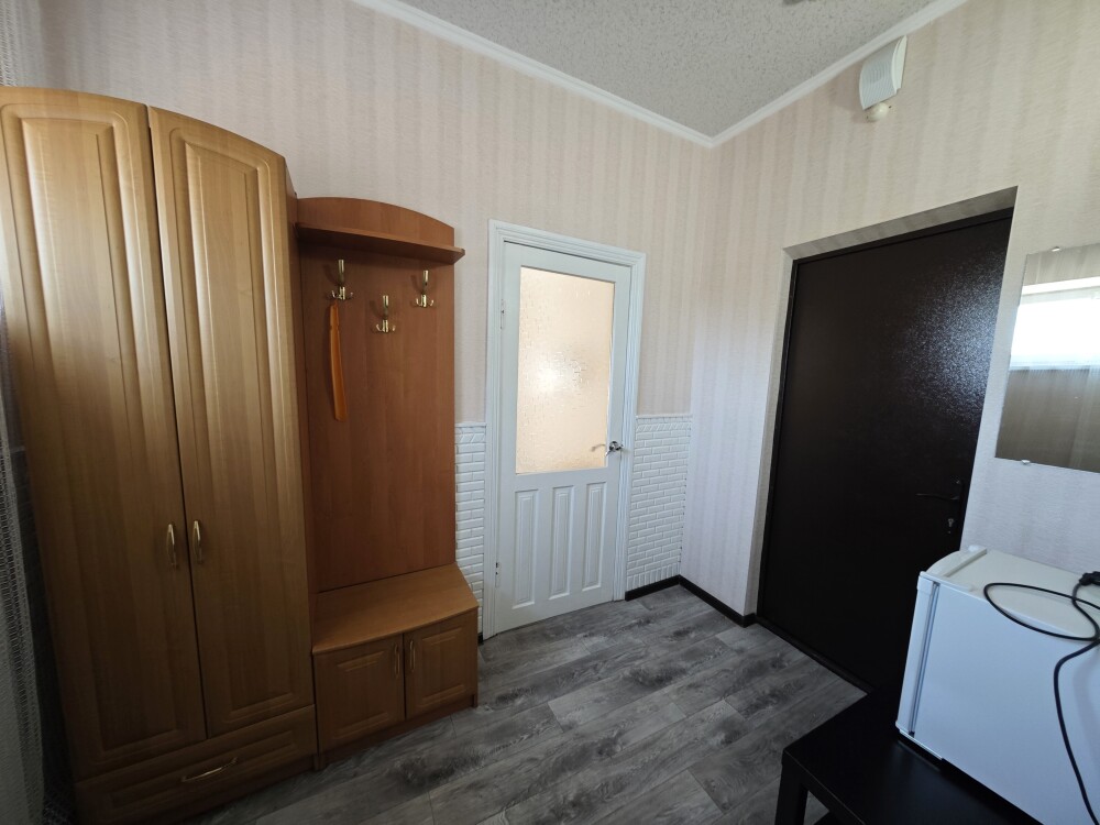 №10. Просторный улучшенный номер находится в отдельном корпусе от основного здания для тех, кому важно уют и тишина от соседей, отвечает всем современным требованиям комфорта. Оснащение номера: оборудован двуспальной кроватью и креслом кроватью, телевизор с плоским экраном 32», сплит система, холодильник, микроволновка, чайник, письменный стол и журнальный столик с необходимой посудой и многое другое. В ванной комнате: душ, туалет, фен, бесплатные гигиенические принадлежности: мыло, шампунь, комплект полотенец. Утюг с гладильной доской на 1 этаже основного корпуса.