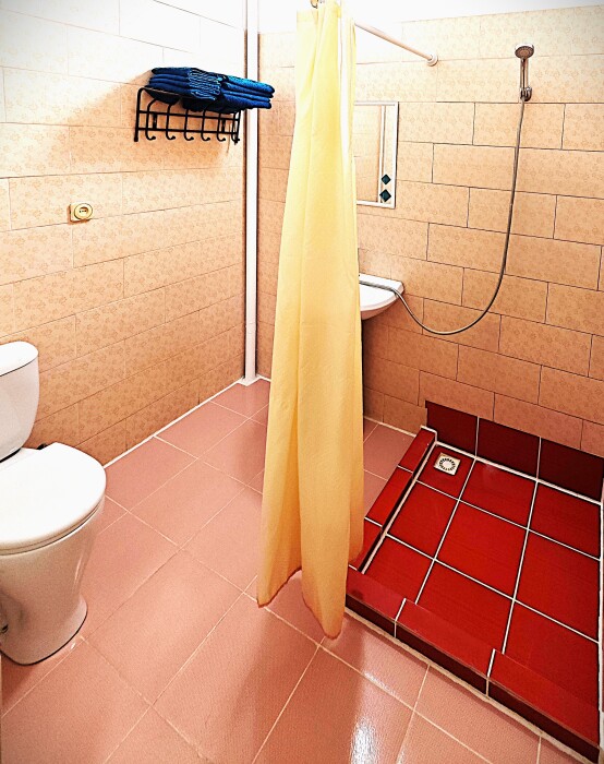 №4. Просторный номер на втором этаже отвечает всем современным требованиям комфорта. Оснащение номера: оборудован 4 раздельными кроватями, телевизор с плоским экраном 32», сплит система, чайник, обеденный стол с необходимой посудой и многое другое. В ванной комнате: душ, туалет, бесплатные гигиенические принадлежности: мыло, шампунь, комплект полотенец. Утюг с гладильной доской, холодильник, микроволновка на этаже. На территории для Вашего комфорта находится современная просторная кухня-столовая для самостоятельного приготовления пищи.