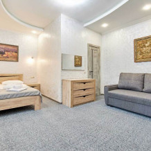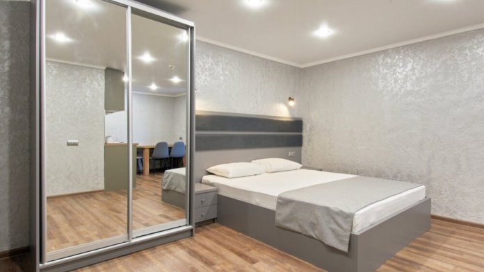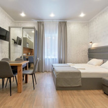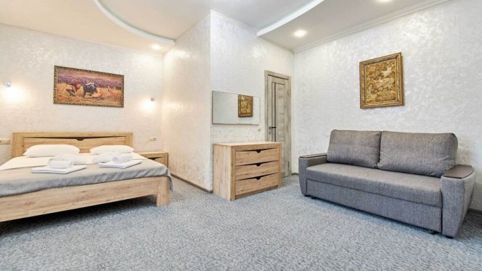 В номере: 1 двуспальная или 2 односпальных кровати.