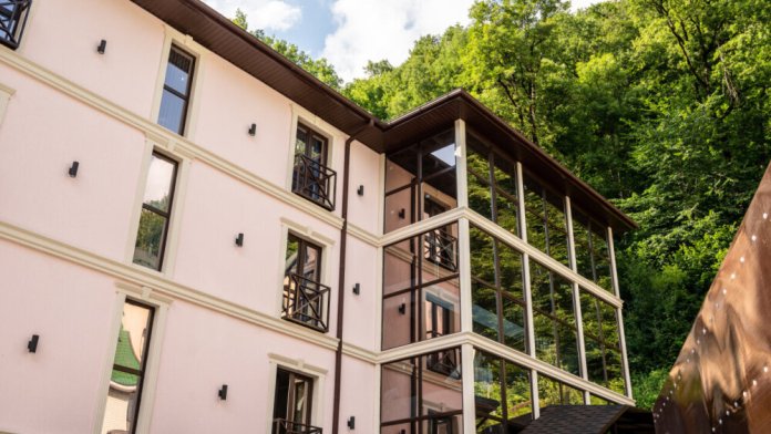 На территории есть парковка, сауна с купелью, красивый двор, виды на горы.