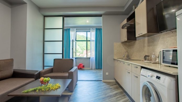 Во всех апартаментах имеется кухня и гостиный уголок. Подключен бесплатный Wi-Fi. В числе других стандартных удобств: кондиционер и телевизор с плоским экраном.