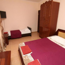 В номере одна двуспальная и одна односпальная кровать или три односпальные кровати.