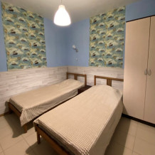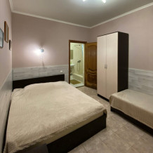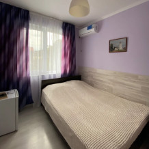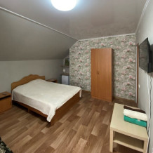 В гостевом доме номера со всеми удобствами, кондиционером (сплит-система), телевизором, холодильником, интернет Wi-Fi. Есть два двухкомнатных номера (для шести местного размещения). Номера на первом этаже с отдельными входами, со своей зоной отдыха. На улице большая обеденная веранда, на которой можно готовить, еще мы кормим своих гостей завтраками и обедами.
