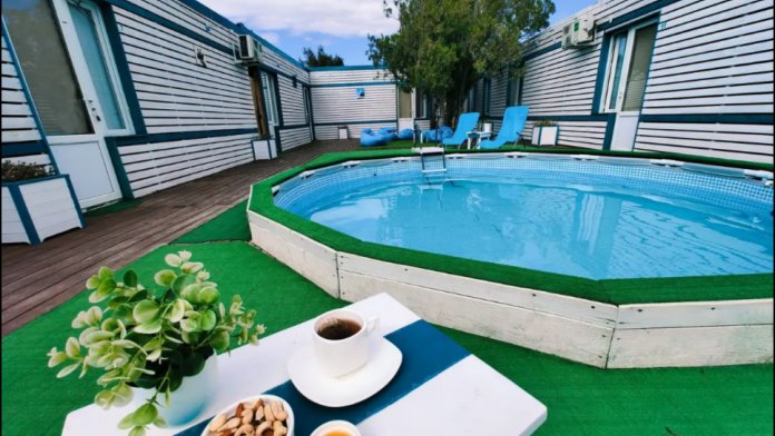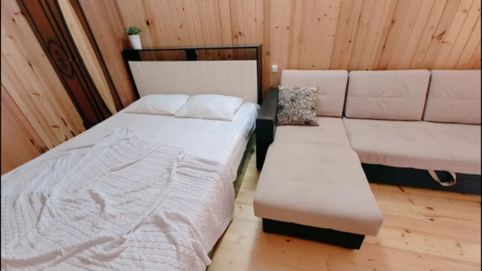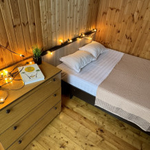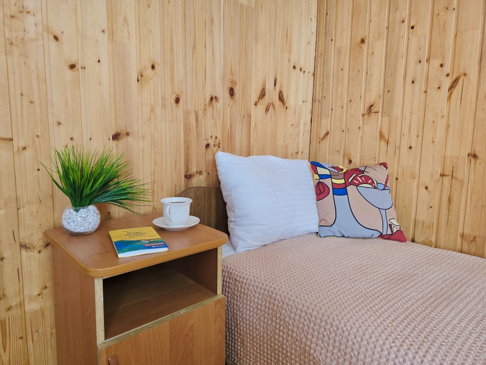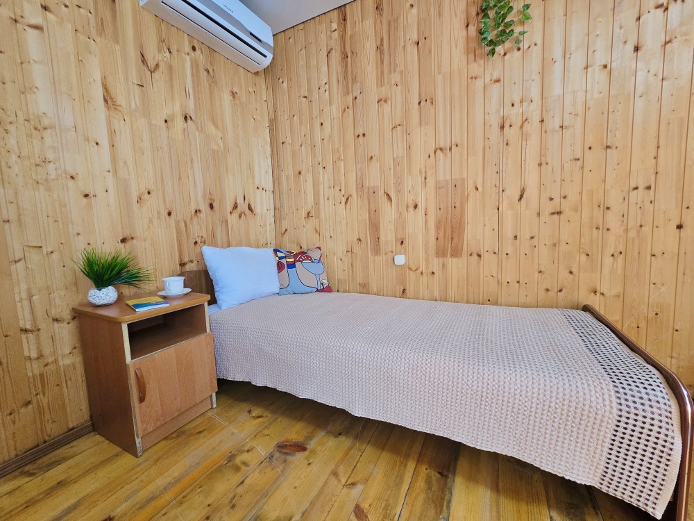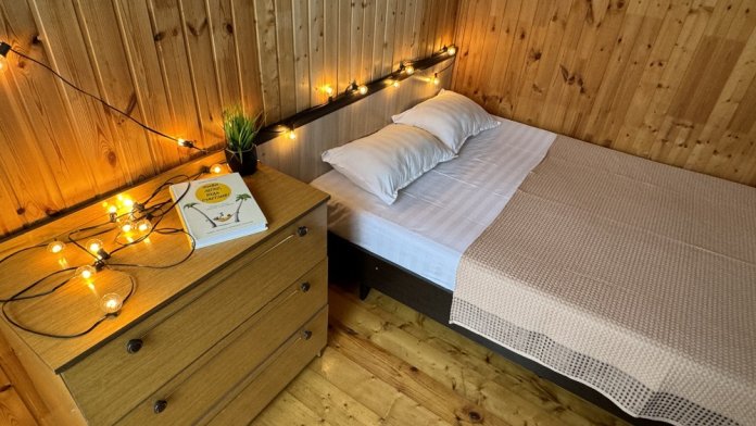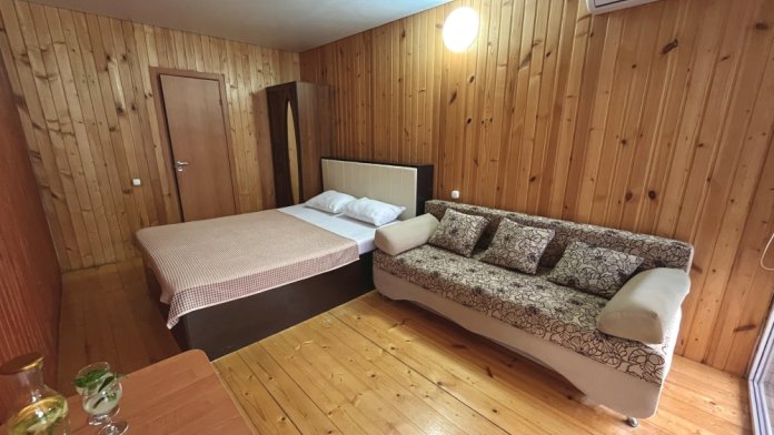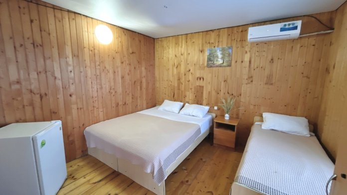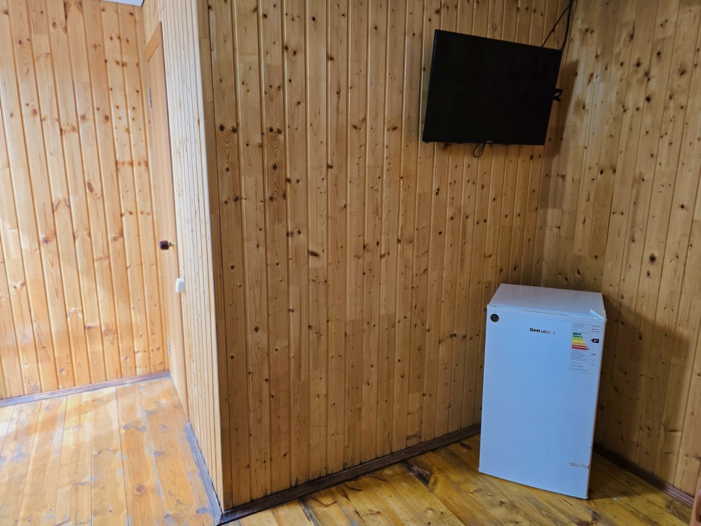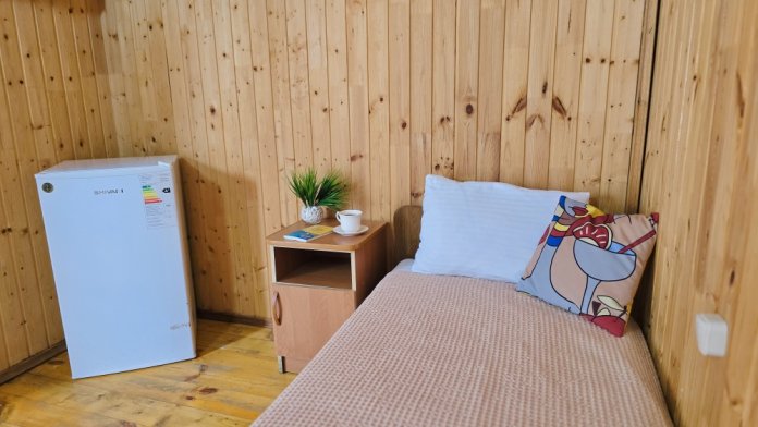 2-х комнатный Дом со своей кухней подходит для проживания 5-6 человек. В нём две отдельные комнаты, санузел с душем.