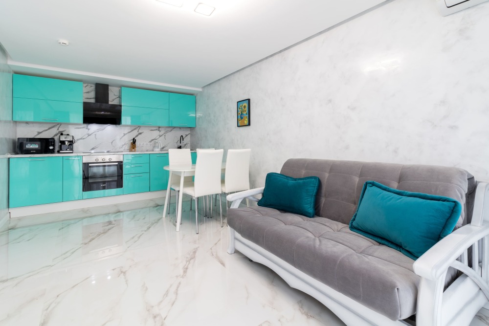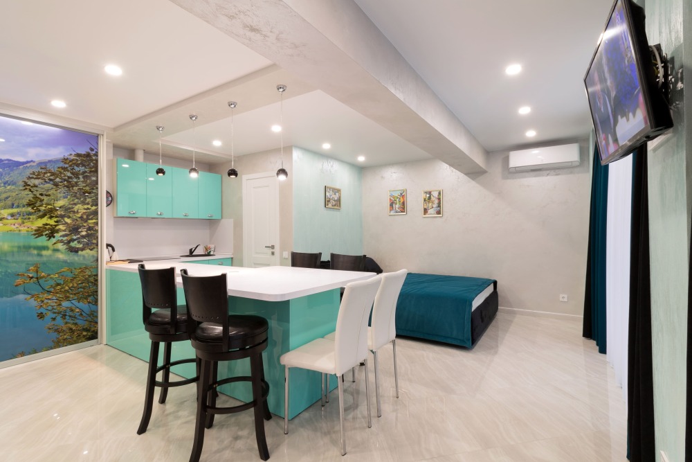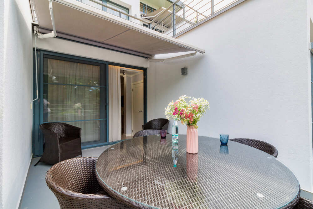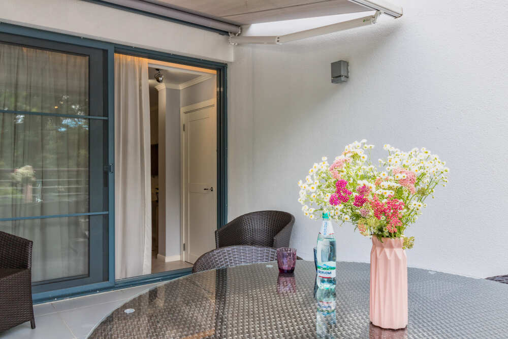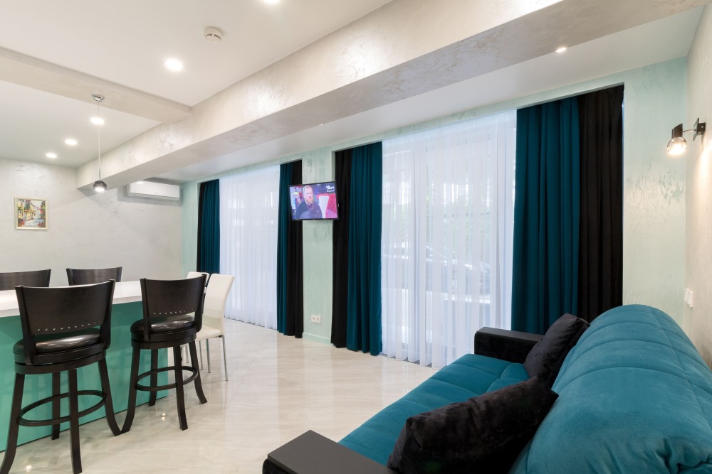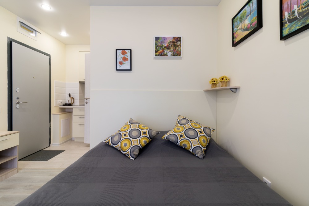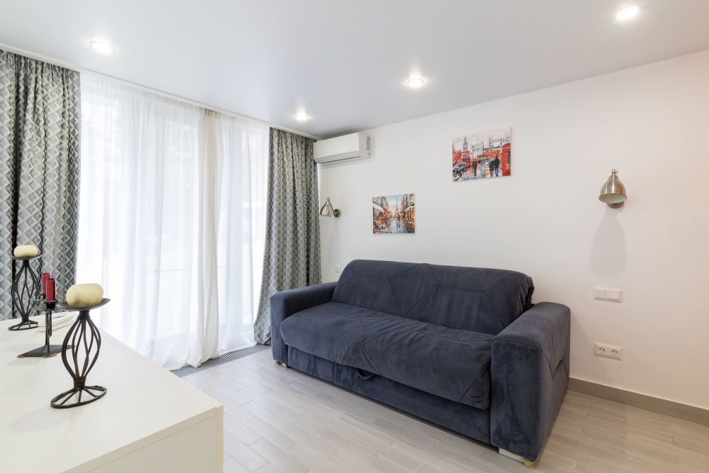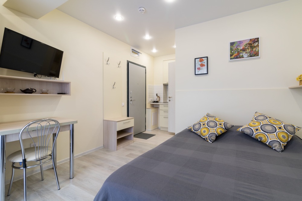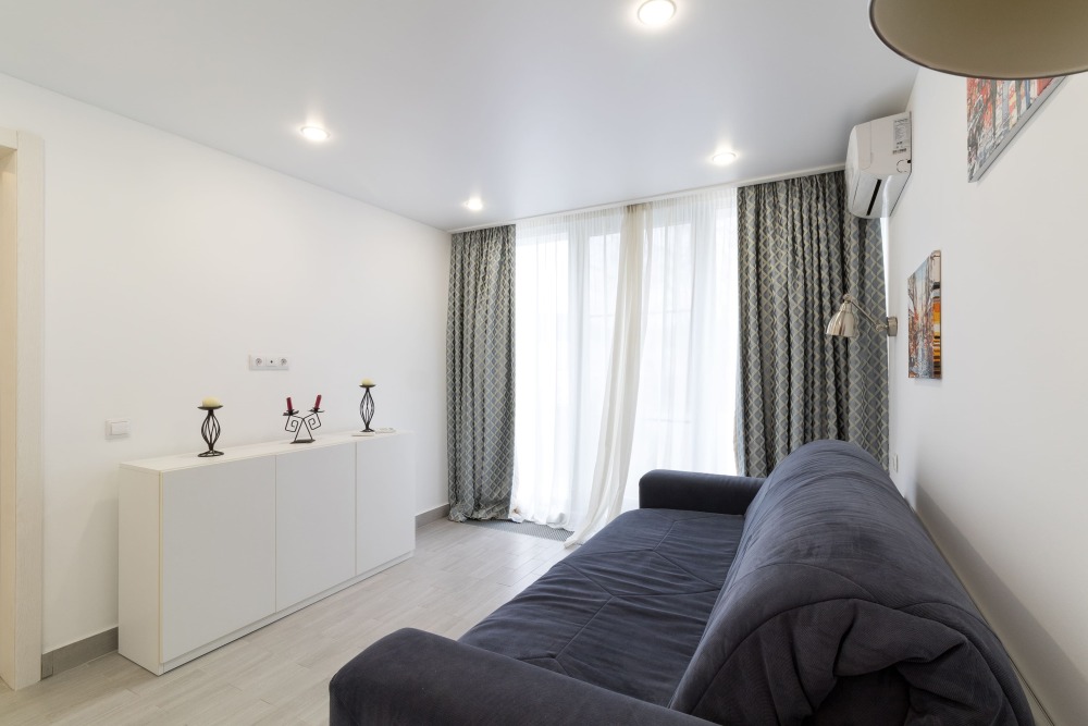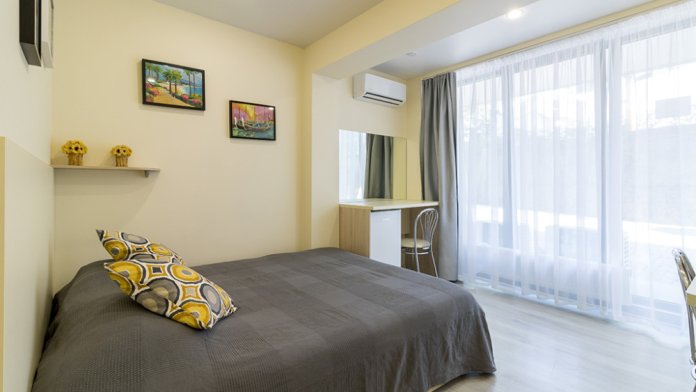 Апартаменты расположены на 1 этаже с видом на внутренний дворик и имеют отдельный вход.