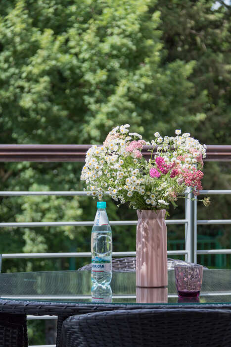 Есть паровой утюг и гладильная доска, сплит-система, высокоскоростной Wi-Fi позволит быть всегда на связи, цифровое ТВ, плетенная мебель на террасе.