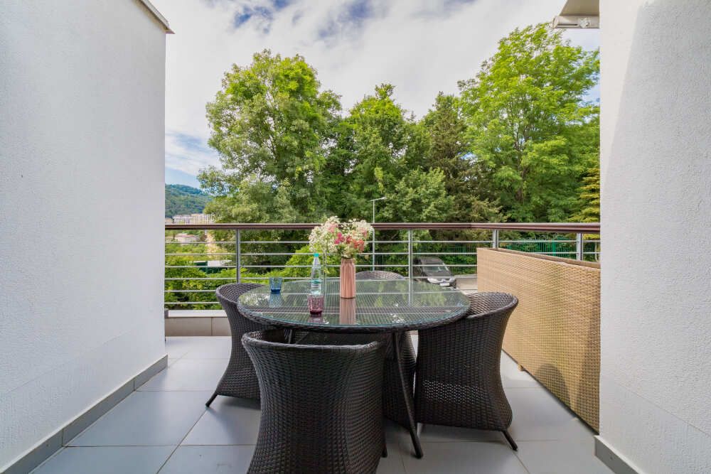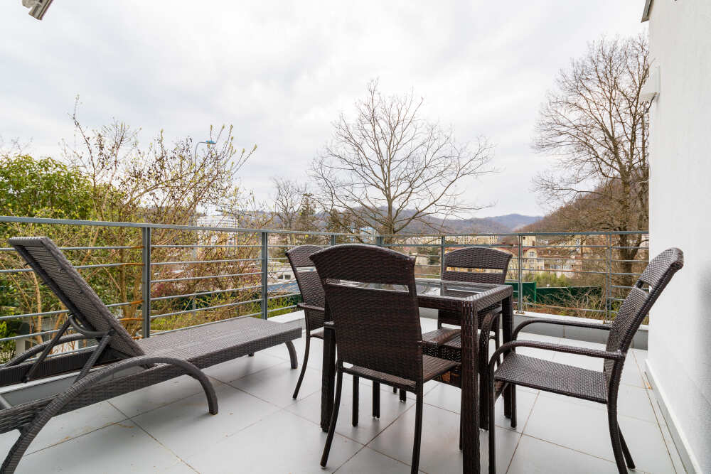Апартаменты расположены на 2 этаже с видом на горы и собственной террасой.