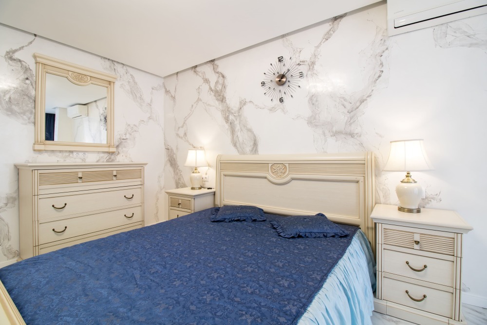 Двуспальная кровать с ортопедическим матрасом, шкаф, постельное белье, махровые полотенца. Есть паровой утюг и гладильная доска, сплит-система, высокоскоростной Wi-Fi, цифровое ТВ, плетенная мебель для улицы.