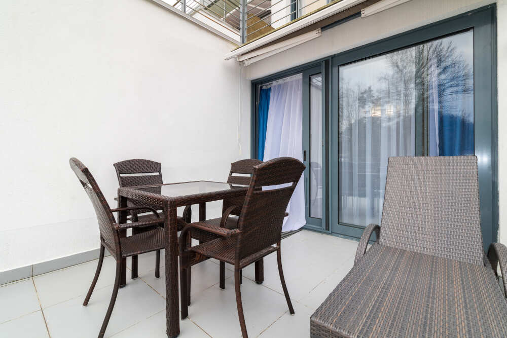 Расположены на 1 этаже с видом на внутренний дворик, имеют отдельный вход и плетеную мебель для улицы.