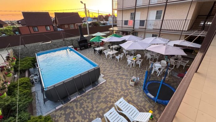 Помимо шестнадцати уютных современных номеров, рассчитанных на 3-4-местное заселение (с возможностью доукомплектования дополнительным спальным местом), в гостинице есть уютный закрытый двор со столиками, шезлонгами, детскими игрушками, теневой зоной. К услугам отдыхающих бесплатный Wi-Fi. В номерах кондиционер, телевизор, душ, туалет. Установлена новейшая система безопасности, круглосуточное видеонаблюдение. Номера отделаны экологическими материалами из древесины, имеется сейф.