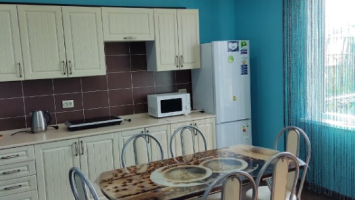 3. Дом со всеми удобствами: кухня-столовая с двухспальным местом, комната с двумя двухспальными кроватями, 2 телевизора, кондиционер, своя большая веранда-беседка.