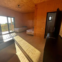 Номер с балконом рассчитан до 3х человек - в номере 2 односпальные кровати и кресло-кровать, а также всё необходимое для приятного отдыха: телевизор, спит система, холодильник, стол, зеркало, шкаф для одежды, фен. Душ и туалет также расположены в номере. Из окон открывается захватывающий вид на море и горы. На территории есть общая кухня со всем необходимым для приготовления и приема пищи, а также каркасный бассейн, зона отдыха и барбекю.