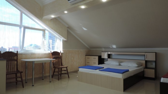 Большая, просторная, светлая студия в центре Адлера, в гостевом доме семейного типа, в этом номере есть все для комфортного спокойного отдыха, полноценная кухня со всей бытовой техникой, душ, туалет, стиральная машинка, кондиционер обеспечит прохладу в летнюю жару, большой телевизор.