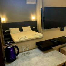 Наши номера с красивым видом на сад и просторными балконами, отвечают всем современным требованиям комфорта. Они оборудованы индивидуальной системой климат контроля, выходом в интернет, принадлежностями для приготовления кофе/чая, телевизором с плоским экраном, холодильником, звуконепроницаемыми окнами. В Вашем распоряжении роскошные ванные комнаты с душевой кабиной, феном и косметическим зеркалом.