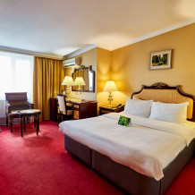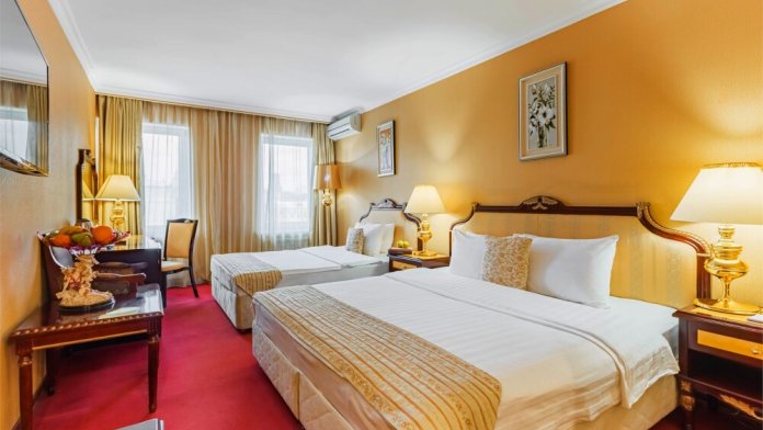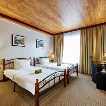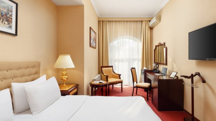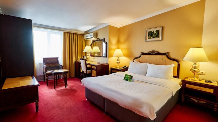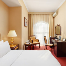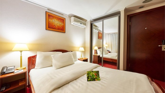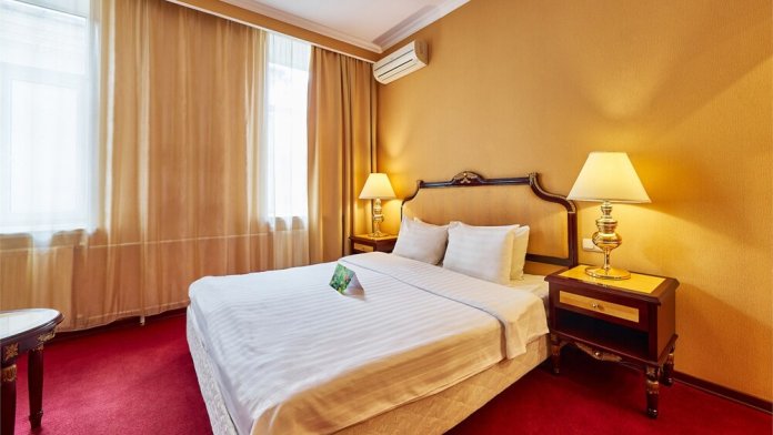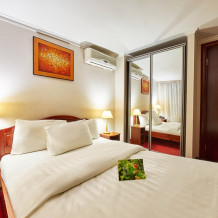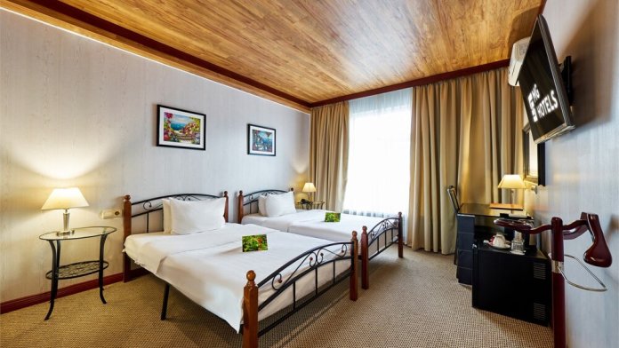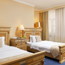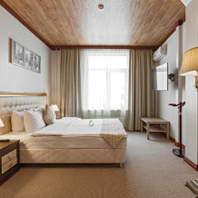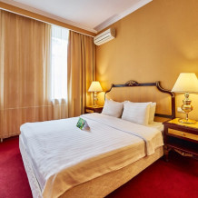 В номере: одна двуспальная (160 см*200 см, или 180 см*200 см) или две раздельные кровати ( 90 см*200 см, или 120 см*200 см).