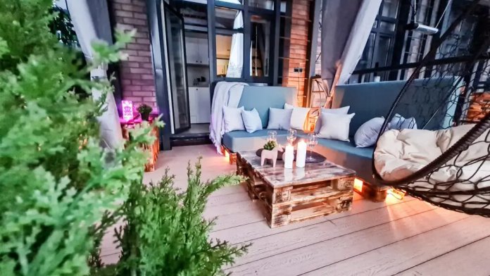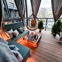 Двухэтажные апартаменты с теплой террасой. Уютный и функциональный интерьер позволит комфортно отдохнуть. А на террасе, под инфракрасными обогревателями, Вам будет комфортно даже в зимние вечера: пить чай, общаться с друзьями, качаться в кресле. Тёплые пледы прилагаются).