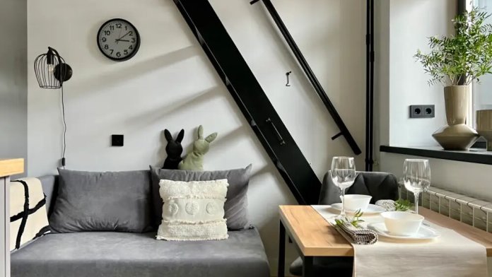 Оригинальный вариант жилья с двухуровневым расположением, просторный и функциональный. Общая площадь 28 кв.м, высота второго уровня 1,9 м.