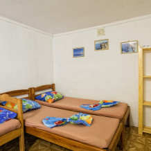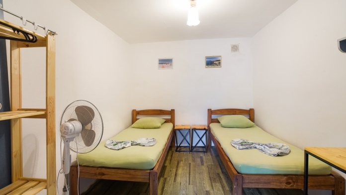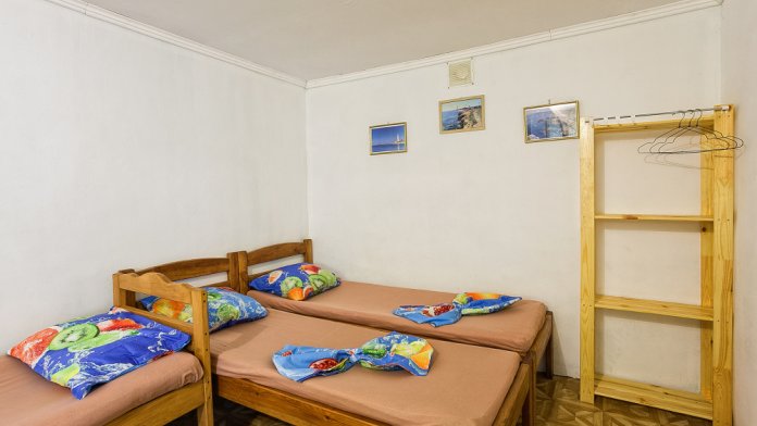 Комнаты укомплектованы деревянными кроватями, стеллажами для одежды, зеркалом, столом, стульями, вентилятором.